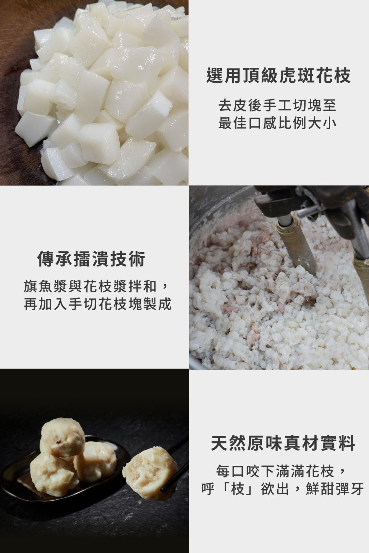 成分:旗魚、花枝、豬背脂(台灣)、樹薯澱粉、胡椒、鹽、糖