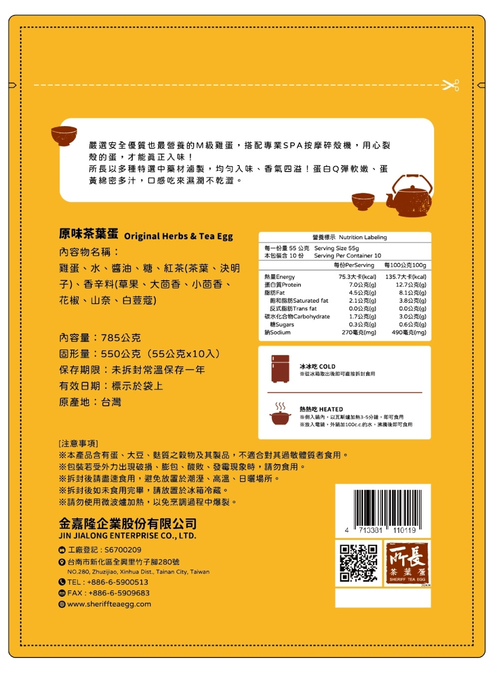 商品成分:雞蛋、水、醬油、砂糖、甘蔗液糖[(蔗糖、葡萄糖、果糖)、水]、紅茶(茶葉、決明子)、辛香料(大茴香、小茴香、花椒、山奈、草果、白荳蔻)